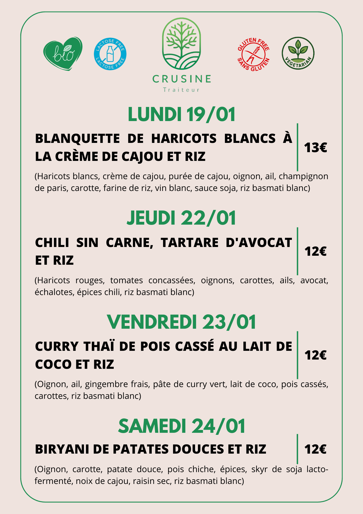 Chaque semaine, je vous propose une nouvelle sélection de plats anti-inflammatoire préparés avec amour et servis dans des contenants réutilisables. Fraîcheur, goût et équilibre sont toujours au rendez-vous.
